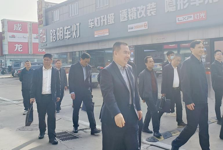 领导们一行首先参观考察了园区汽车美容装饰、汽车改装、汽车配件等经营区商家,五方天雅汽车服务园执行董事赵梦、总经理孙军分别对园区的经营产品分区、车主需求和商家经营模式进行了详细的介绍。